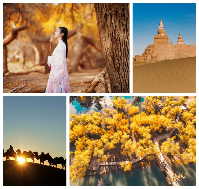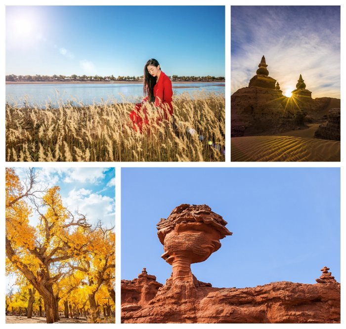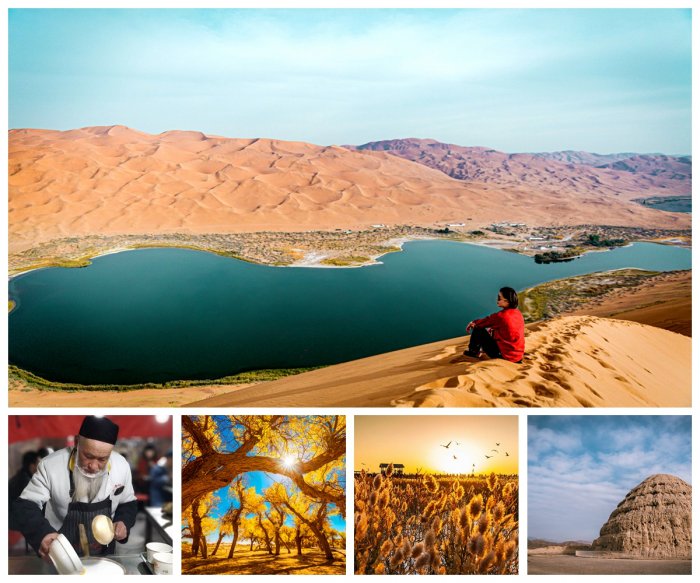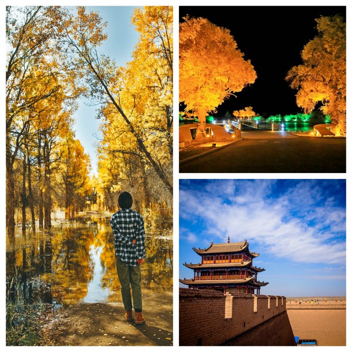我当时就是这样玩的,第一天先去兰州吃个牛肉面,逛逛正宁路夜市喝个牛奶鸡蛋醪糟,然后穿越巴丹吉林沙漠,看过金秋胡杨,去西北影视城还星爷一张门票,吃个烤羊肉串,美滋滋~