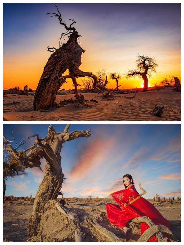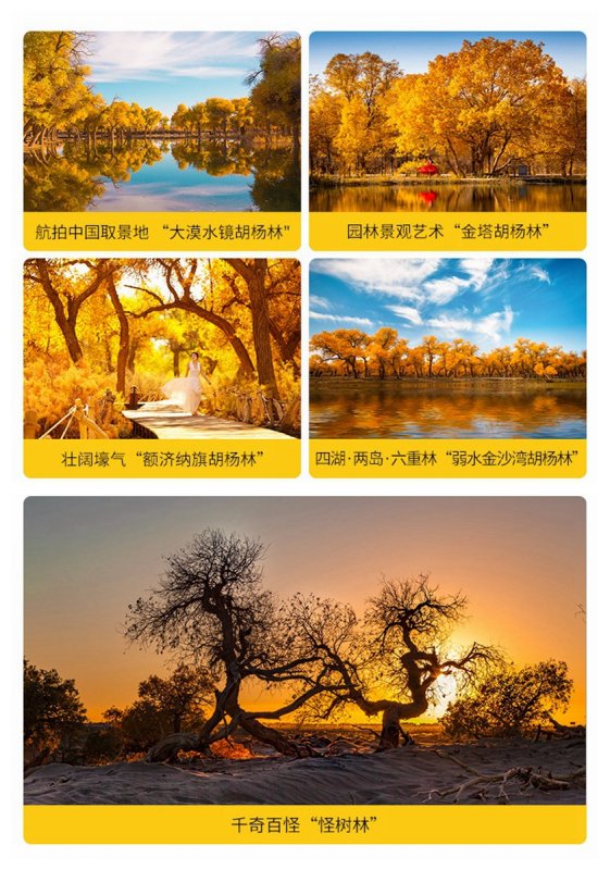 我拍出来的照片怎么没有你们这么好看呢,我去年也去了,被坑惨了,我已经无语了,我们行程里面说的好几个胡杨林,实际过去就是看看路边的胡杨林,根本算不上景区,住宿安排也很坑,各种的忽悠人。